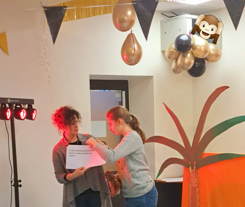Uczniowie mieli możliwość zobaczenia inscenizacji kukiełkowej do opowiadania pt. „Jak biały słonik zawstydził małpy”.