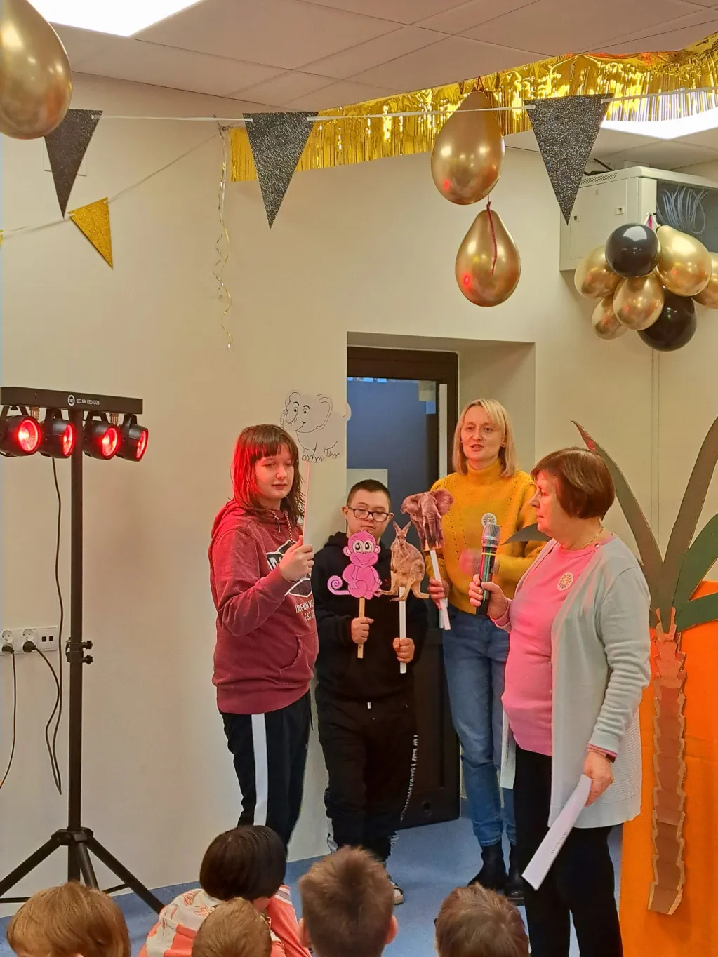 Bajkę przygotowali i zaprezentowali uczniowie z pomocą nauczycieli. Uczestnicy odpowiadali na zagadki i pytania dotyczące wysłuchanej historii oraz wykonali kreatywne prace plastyczne.
