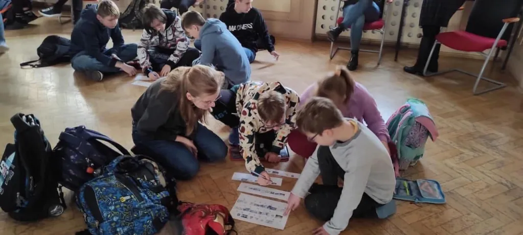 Wolontariusze z klas 8a wspierali młodszych uczniów podczas warsztatów dotyczących bezpieczeństwa w czasie ferii. 🌨⛸⛷