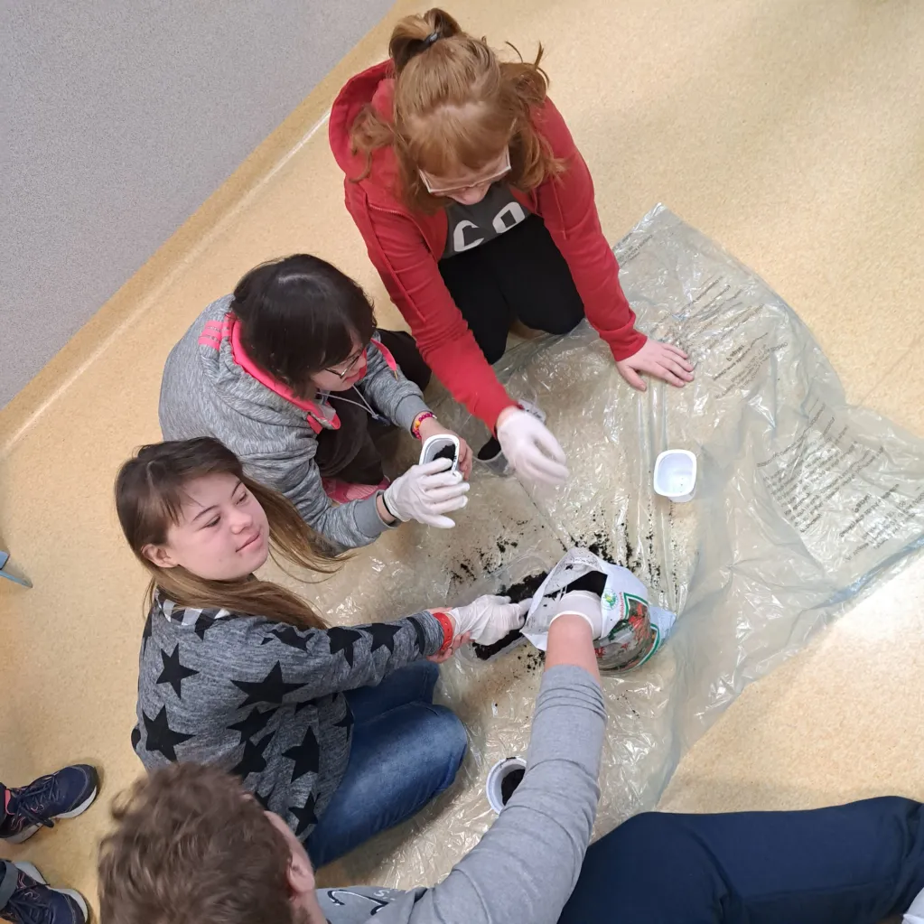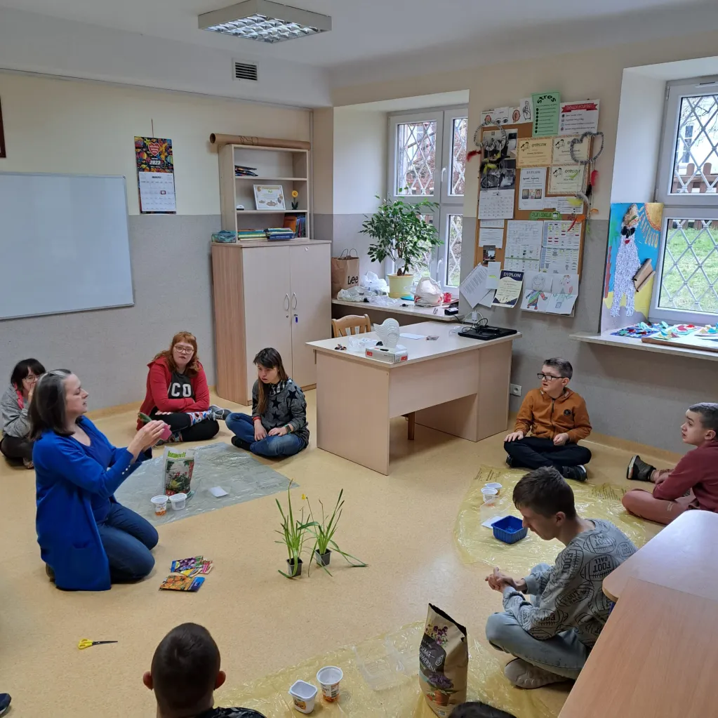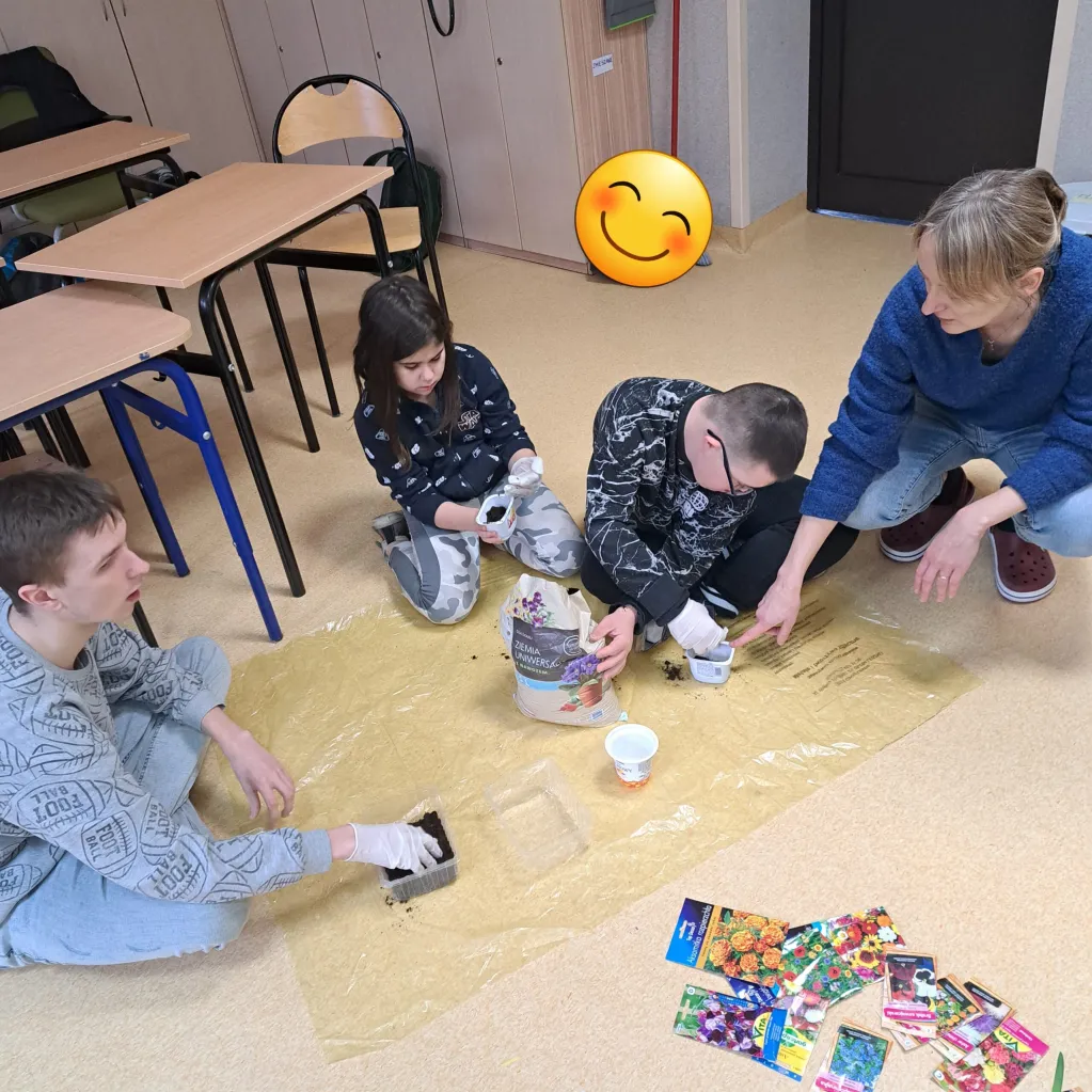 Uczniowie klas 4d, 7c i 8f spotkali się na lekcji pt.:” Od nasiona do rośliny”🌱🪻🪷