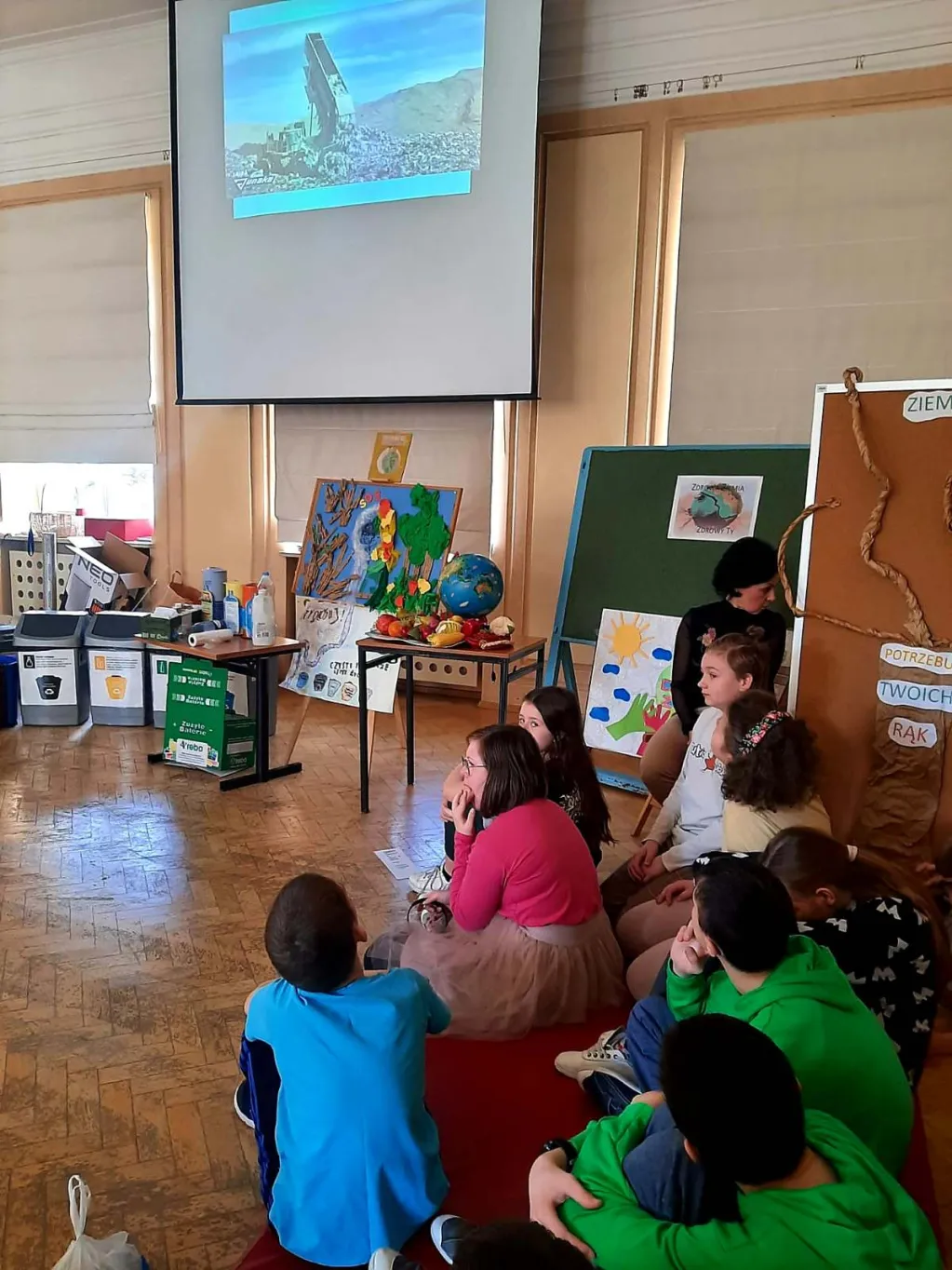 W dniu 26 kwietnia 2023 r. uczniowie klas 4 – 8 szkoły podstawowej uczestniczyli w warsztatach ekologiczno-przyrodniczych z okazji Światowego Dnia Ziemi🌍.