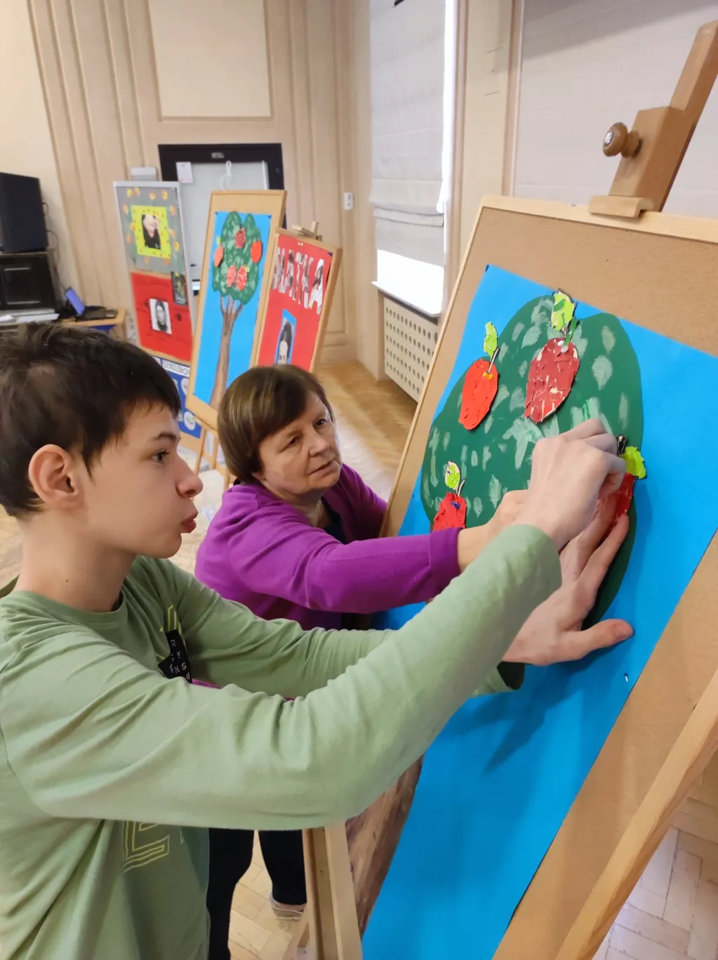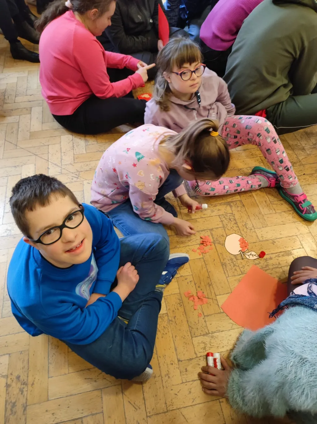 Z zaangażowaniem wykonali pracę plastyczną🍎. Na zakończenie spotkania wszyscy wspólnie zatańczyli żydowski taniec integracyjny w kręgu💃🕺.
